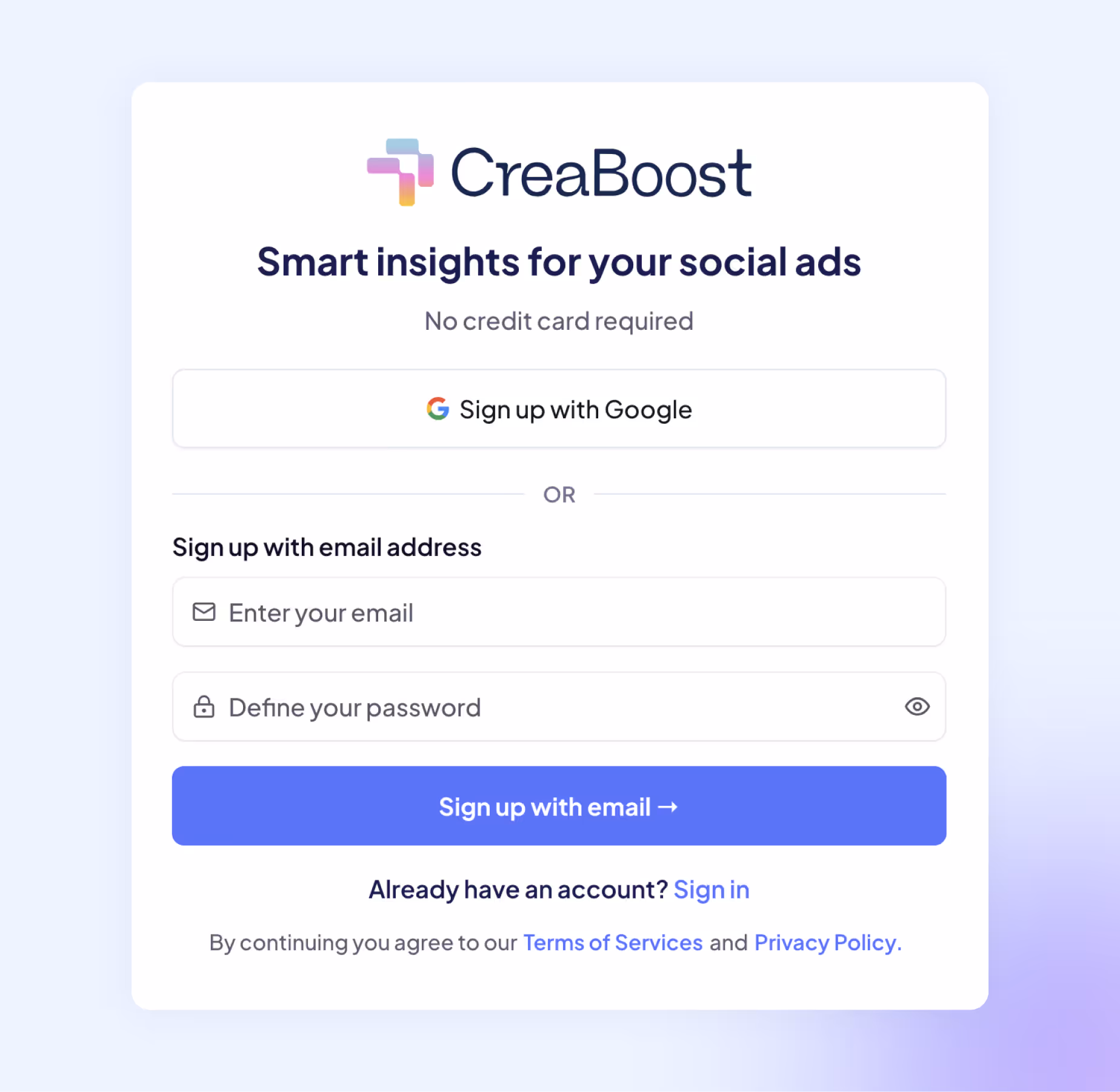 CreaBoost is the all-in-one creative analytics platform that helps advertisers, agencies, and brands understand what drives ad performance across Meta, Google, and TikTok. It connects your creatives, products, and metrics to reveal actionable insights — powered by AI.