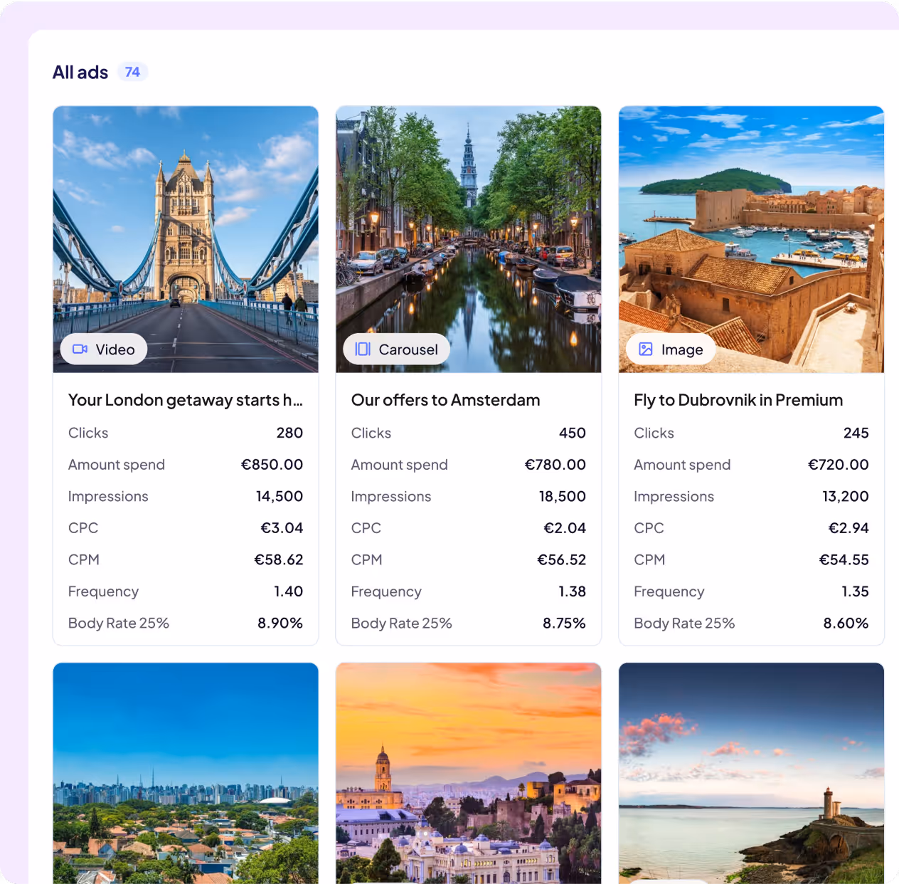 Spot underperforming ads before they love impact and replace them with engaging content.