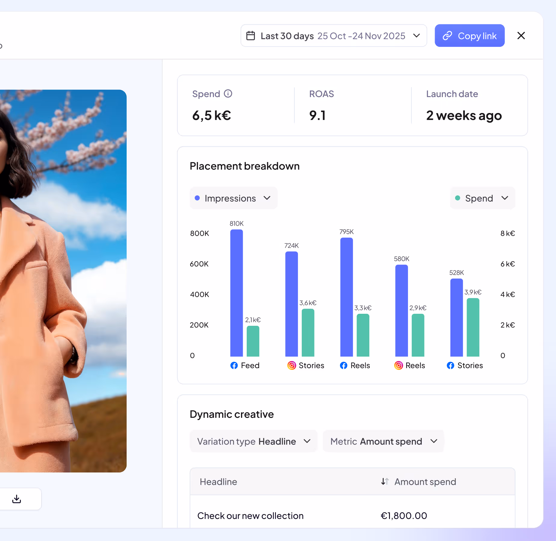 Ask our AI to automatically tag your creatives and discover which content performs best.