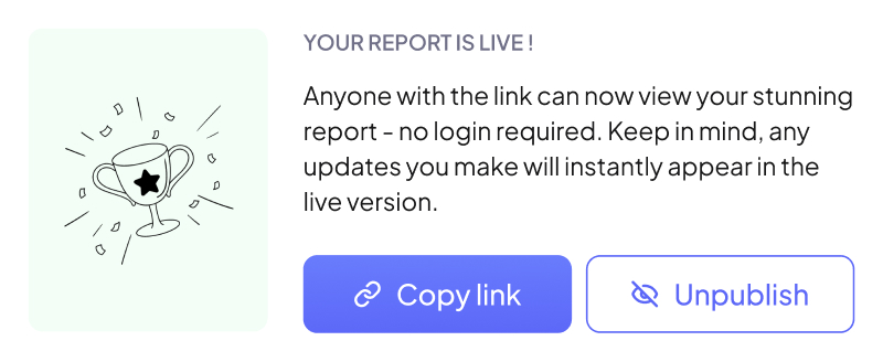 Yes. You can publish any board or report and share it via a public link — or embed it directly in Notion, Looker Studio, or your client portal.
